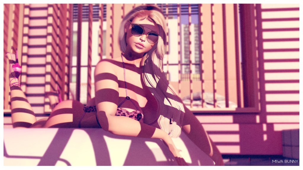 My favorite places: Amber Bay, Le Chateau Motel, Palmwood City, Mr. Juerga Reggaeton Club, The Waste. These places always seem to be in-between, it’s like they belong to a specific time or memory, but they are still. They remain in that space, looking at them, living in them makes me recall and remember good and bad times I lived. They are both frozen in time but very much alive. And that makes me smile, that is what keeps me in SL. That is why I keep coming back to it. That is why I created Amber Bay with Lyra, because there’s a beauty to moments.